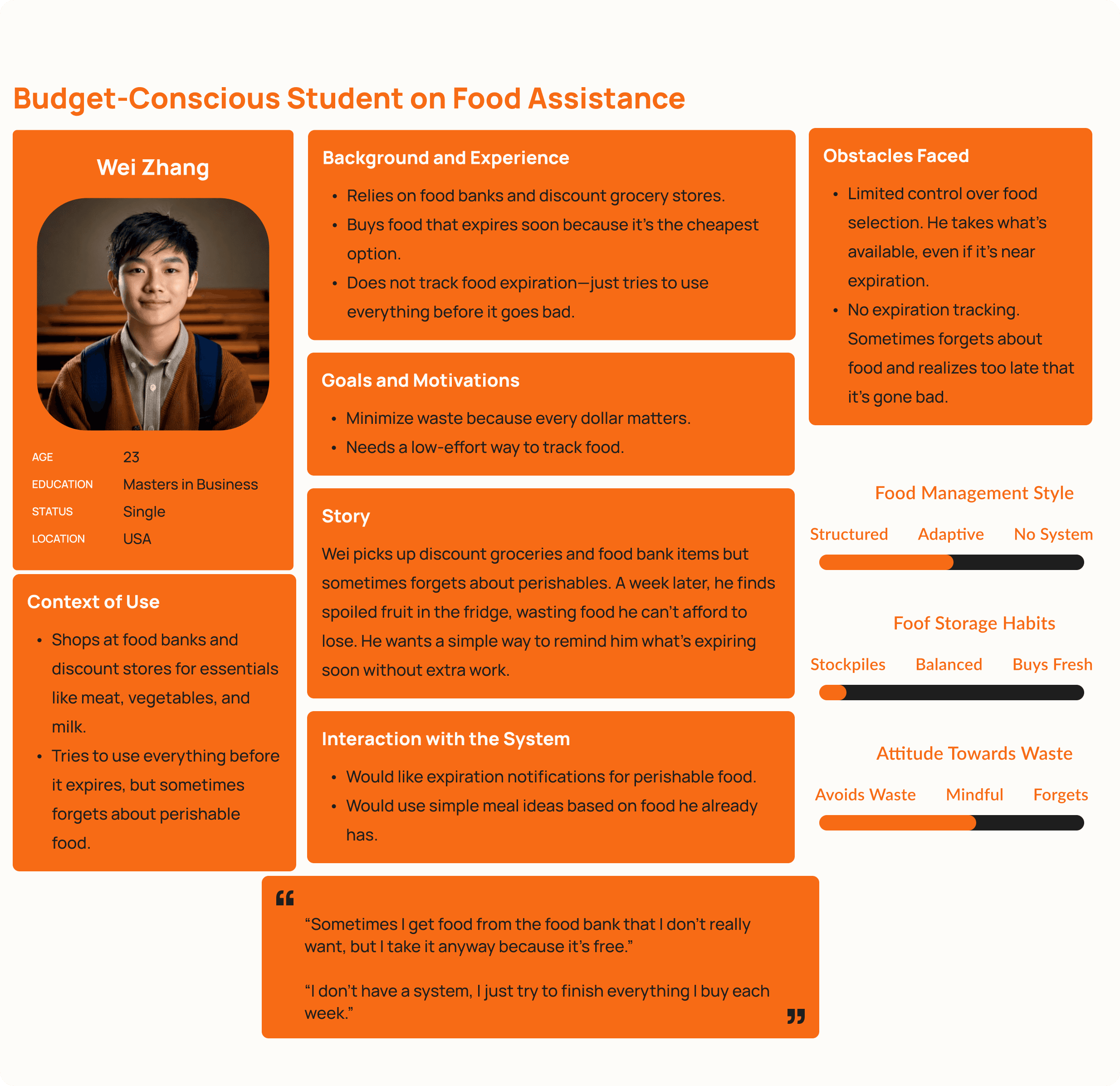 I ensured the personas reflect a balance of real user insights and fictional synthesis, while highlighting user goals, frustrations, and external influences. I also wrote a short narrative for each persona to help situate their daily life and explain how and why they’d use the system.