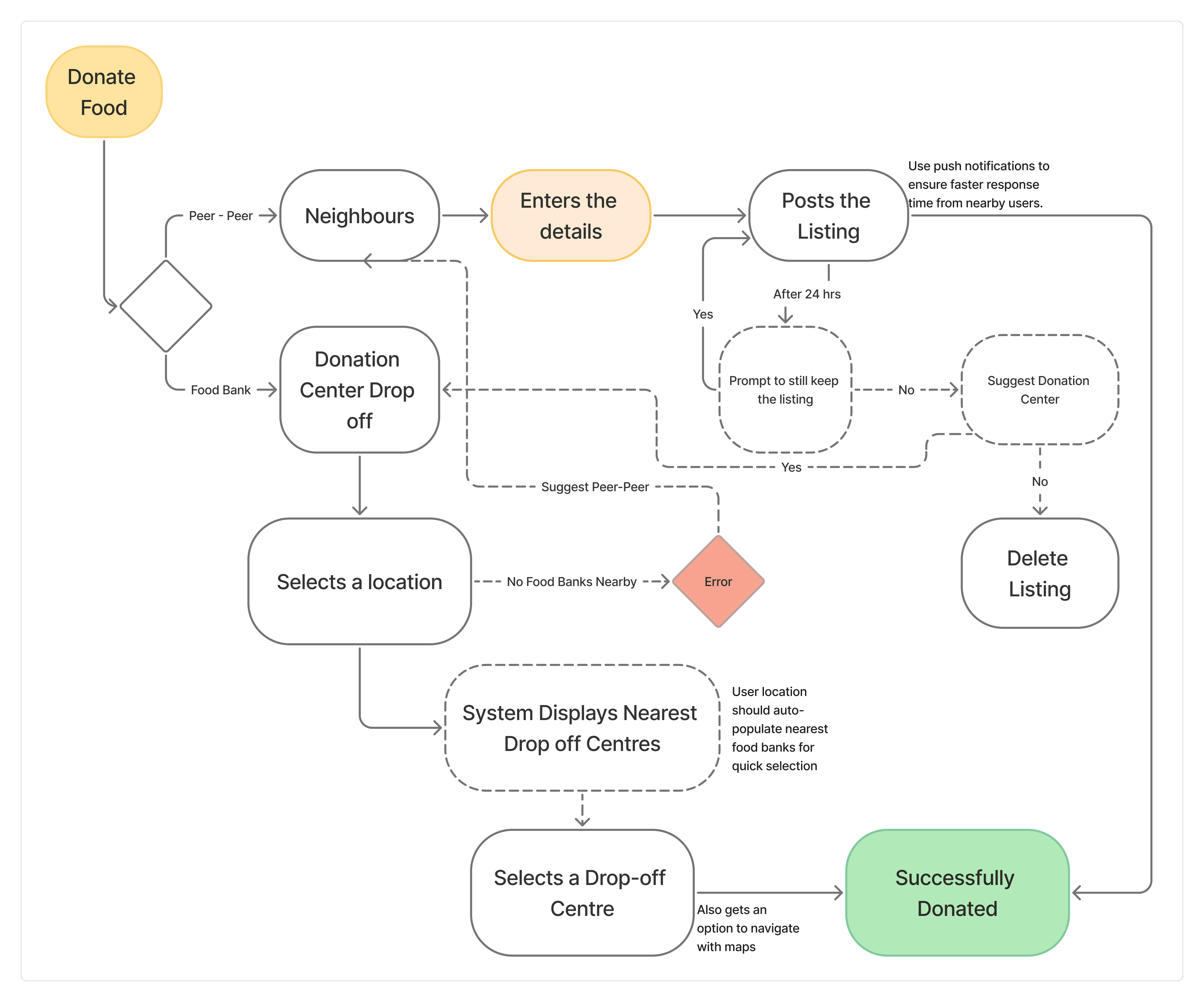 Each flow includes clear start and end points, step-by-step paths, and notes on inputs, outputs, and decisions along the way. While mapping the flows, I paid attention to things like functional triggers, possible errors, and how users might navigate through different paths depending on their choices.