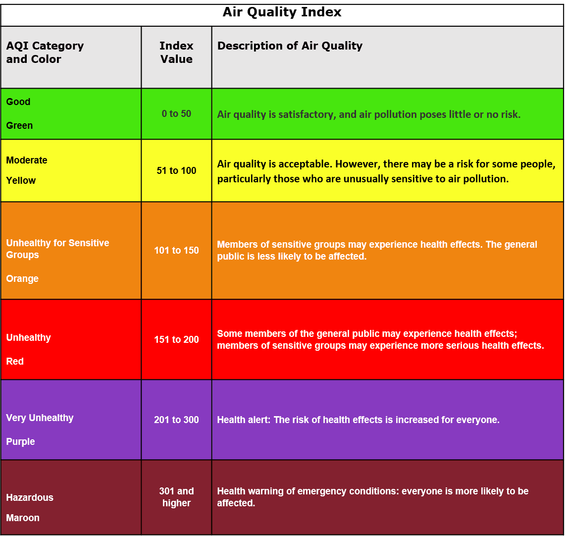 Recognized AQI calculation.