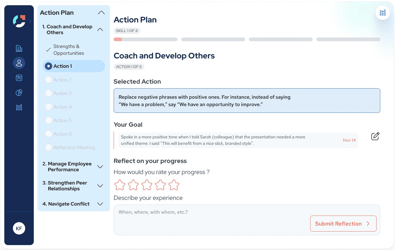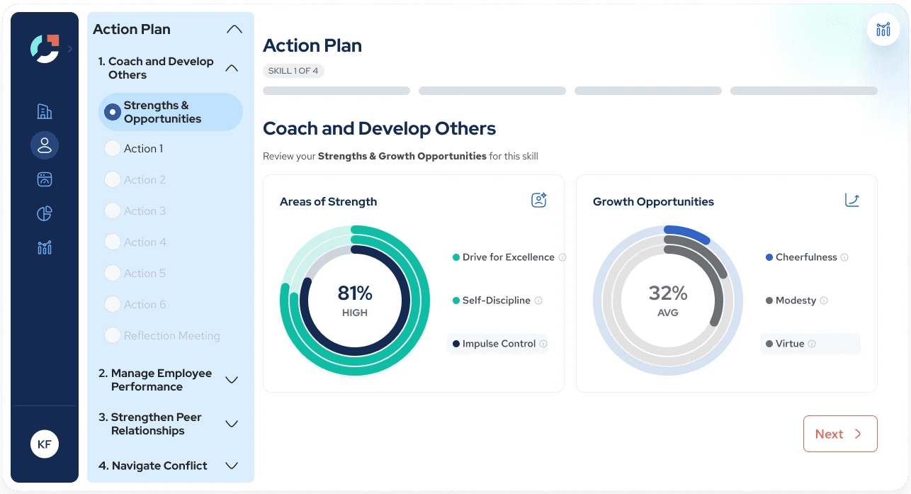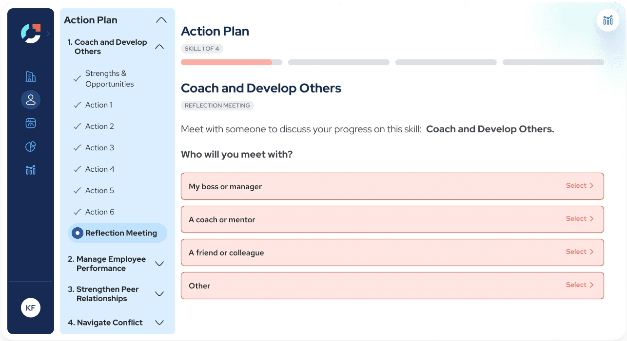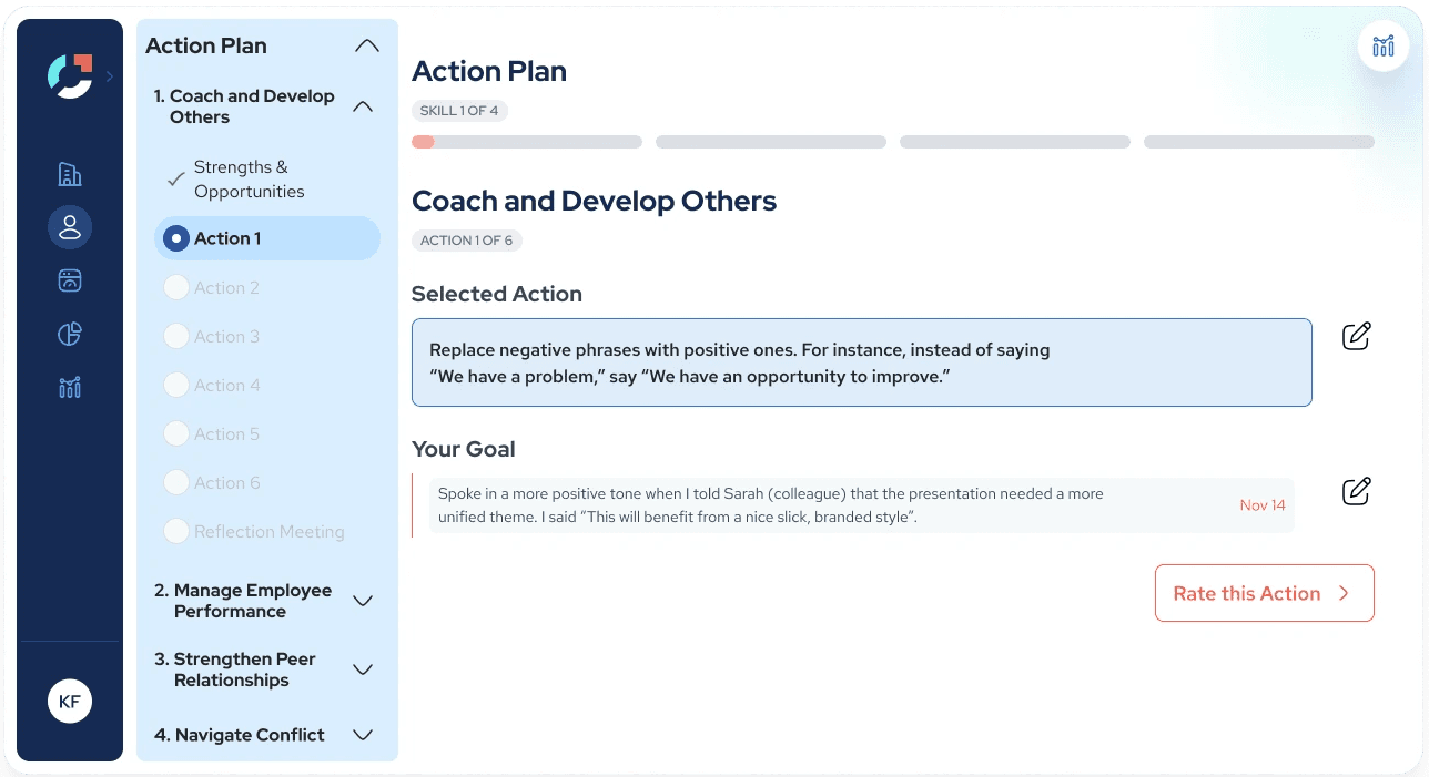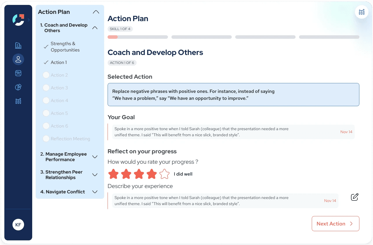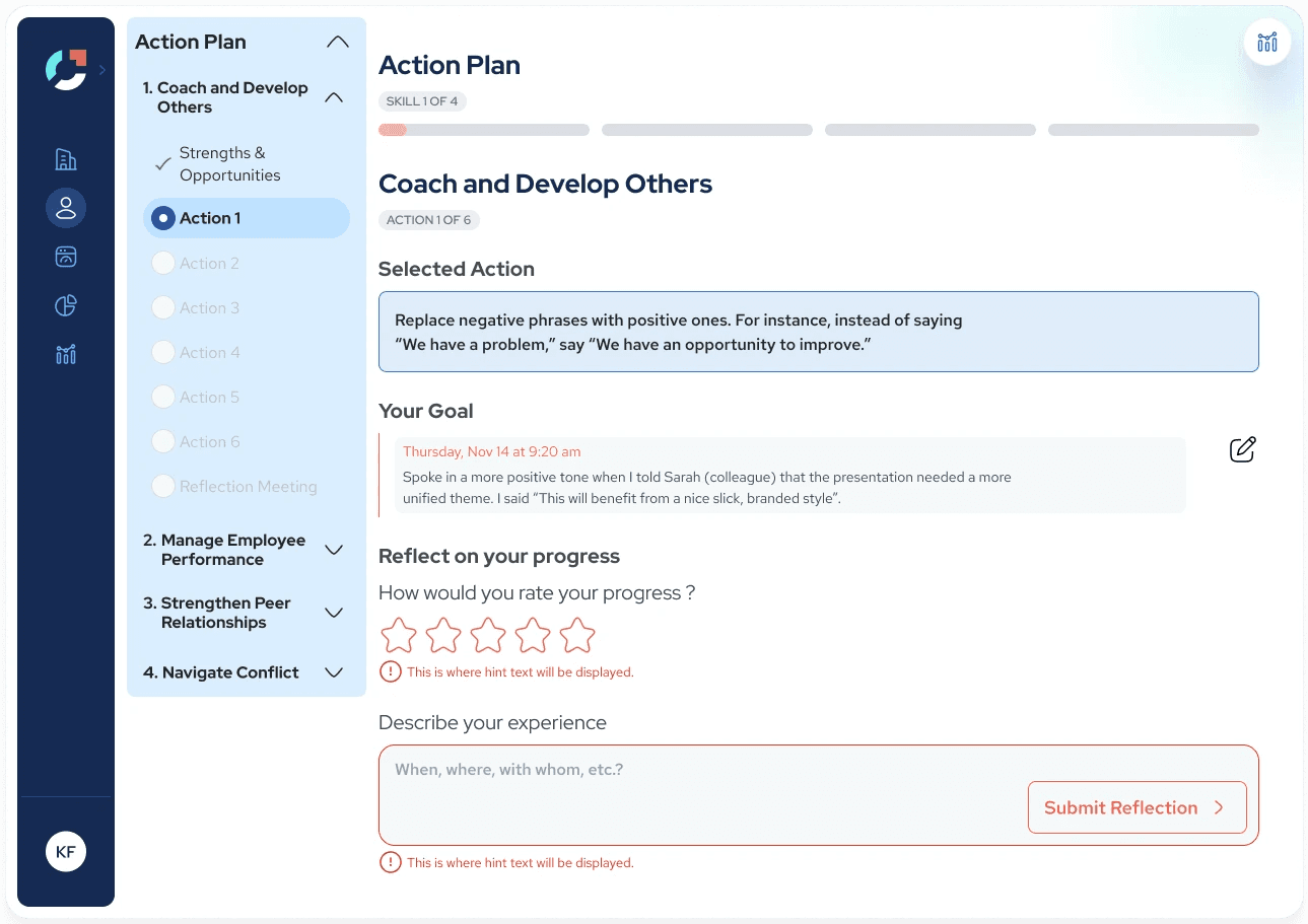 Over the course of this project, I redesigned Joyntly’s post-assessment Action Plan experience from the ground up, rethinking how users move from assessment results into real skill development. The work focused on shifting the experience away from streak-based activity tracking toward a guided, goal-oriented model that supports follow-through in day-to-day work. I led the end-to-end effort, from defining user flows and interaction patterns to building interactive prototypes, identifying usability and accessibility issues, and partnering closely with PMs and engineers to make the redesign build-ready.